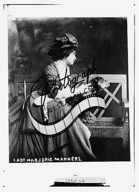 Lady Victoria Marjorie Harriet Manners,1883-1946,seated with dog,bench