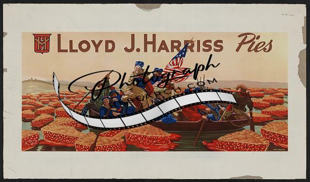 Lloyd J. Harriss Pies,George Washington,river of cherry pies,1947,Advertisement