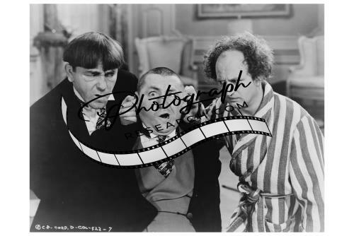 Left to right: Moe Howard, Curly Howard and Larry Fine, the Three Stooges, performing a comedy routine