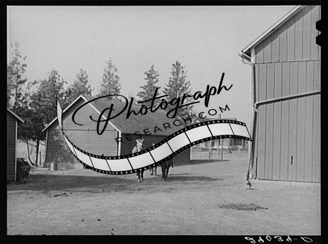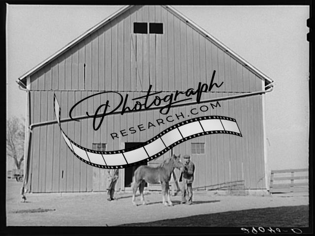 Title: FSA (Farm Security Admninistration) supervisor examines colt owned by Fred Maschman, TP client. Maschman uses two teams to farm his land. Iowa County, Iowa