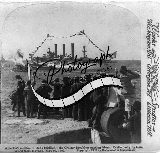 Cruiser BROOKLYN passing Morro Castle,General Wood,Havana,Cuba,May 1902