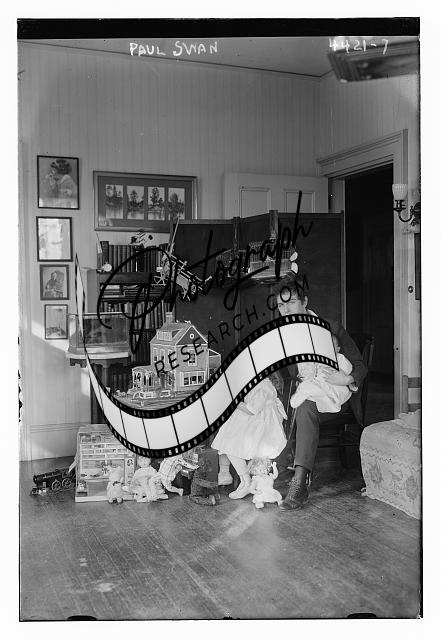 Paul Swan,man playing with children,baby,little girl,doll house,1917,toys