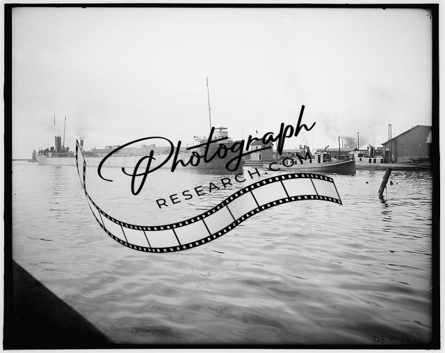Towing,freighter Peter White,cargo ships,tugboats,docks,Cleveland,Ohio,OH,1900