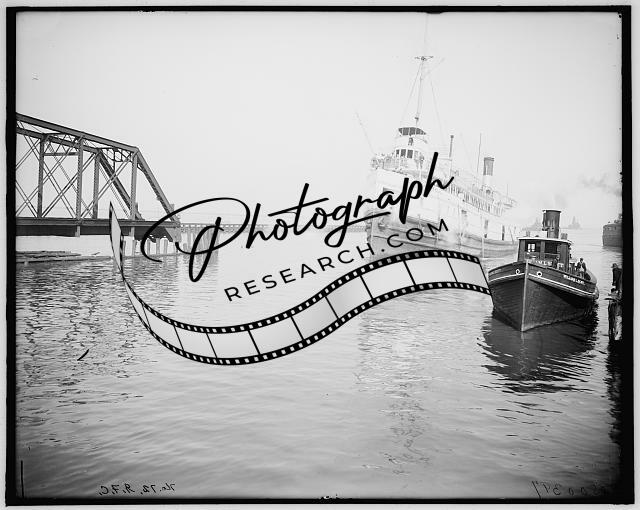 Steamer City,Ottawa entering Cuyahoga River,tugboats,Cleveland,Ohio,OH,1900