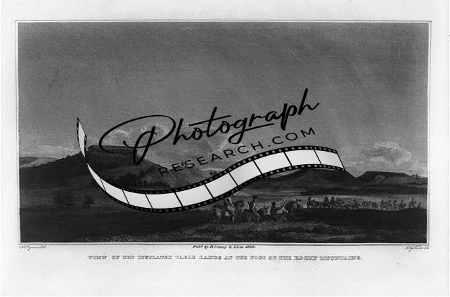 View,insulated table lands,foot,Rocky Mountains,buttes,S Seymour,CG Childs,1823