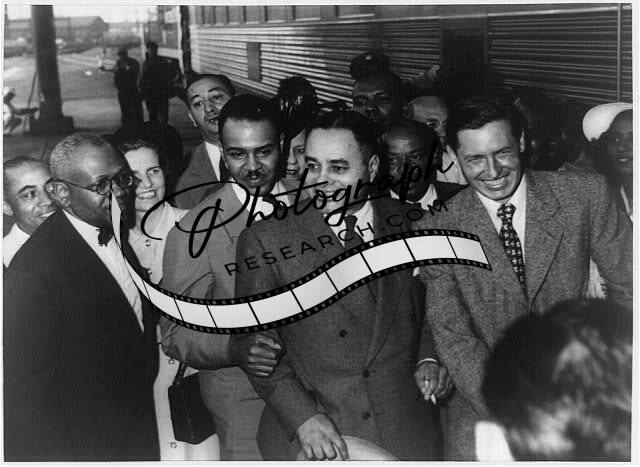 Raplh J Bunche arriving,Los Angeles,convention,received Spingarn Medal,1949