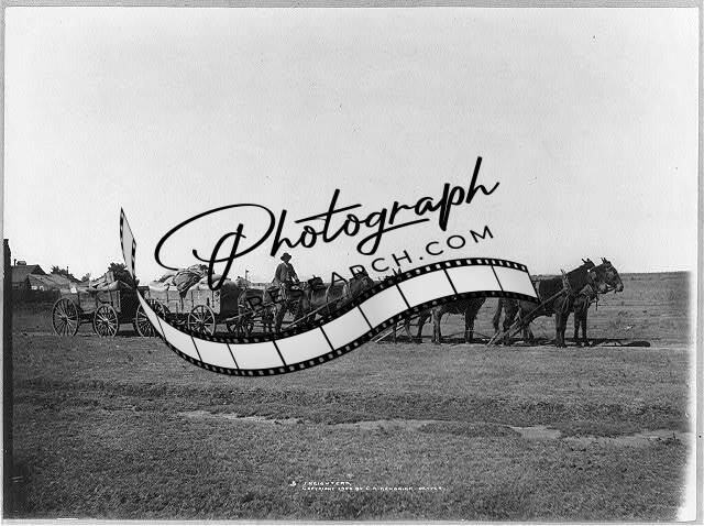 Freighters,8 mule team harnessed to wagons,c194,Cowboys,C.A. Kendrick,Denver