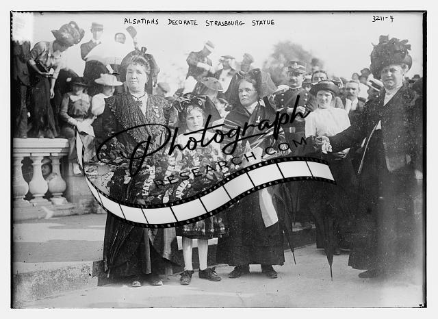 Alsatians decorate Strasbourg statue,Bain News Service,women,little girl