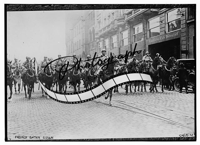 French approach Essen,horseback riding,troops,soldiers,streets,tracks,Germany