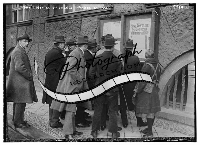 Goverment notice,papers,announcement,crowds,street,French Invasion,Essen,Germany