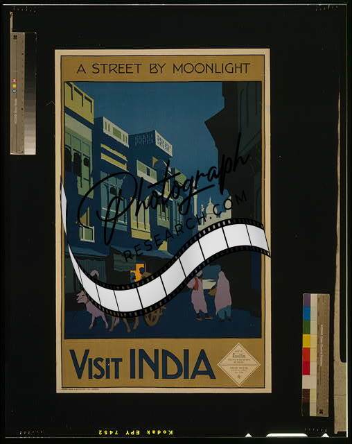 A Street by Moonlight,Visit India,c1920,Ox Cart,Night Time,City Life