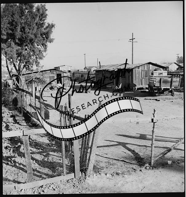 Title: Near Fresno, California. Migrants' tents are a common sight along the right of way of the Southern Pacific