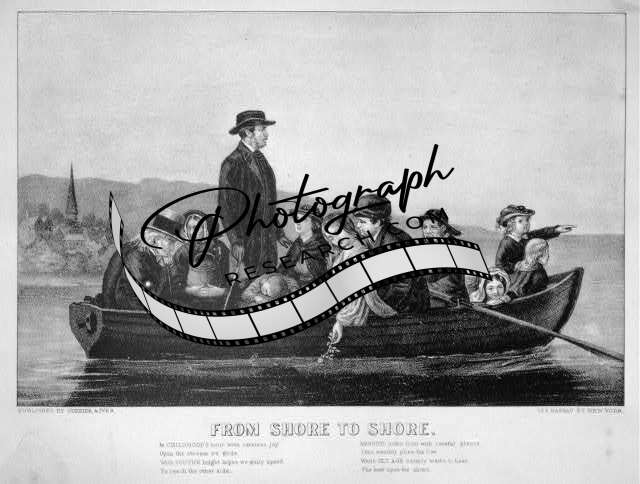 From shore to shore,1856-1907,Currier & Ives,Photo,people in row boat,paddle
