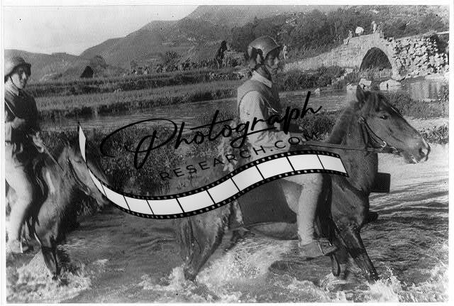 China at War,1937-1945,Camouflaged cavalry crossing river,soldiers,horseback