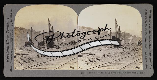 Steam-shovel and triped drills deepening canal prism in 70 ft. berm, Culebra Cut