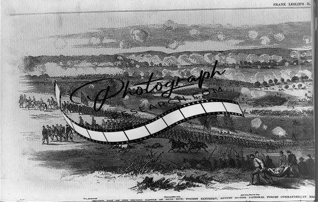 Second day,battle,Bull Run,National forces,rebel troops,E Forbes,Virginia,1862