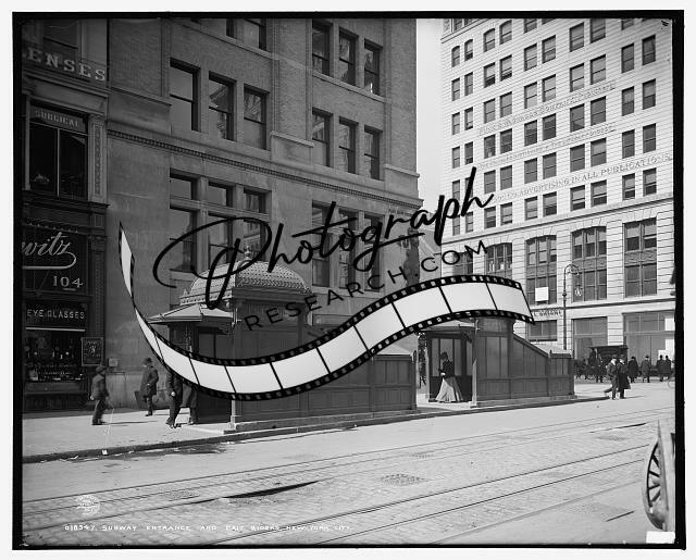 Subway entrance,exit kiosks,buildings,New York,NY,Detroit Publishing Co,c1905