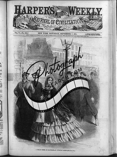 Female rebel,Baltimore,Maryland,MD,everyday scene,Union troops,1861,secessionist