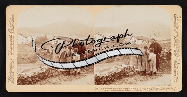A picturesque bridge and country homes in the mountains of northern Spain--betwe