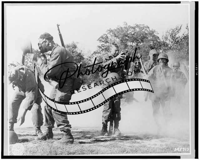 Gas drill,trainees,9th Infantry Division,military,Fort Dix,New Jersey,NJ,1940s