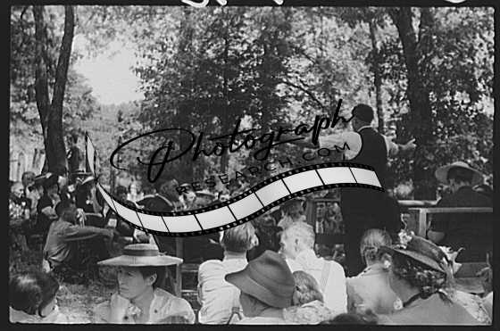 Title: Friends of the deceased's family, at an annual memorial meeting in the family cemetery. In the mountains near Jackson, Kentucky
