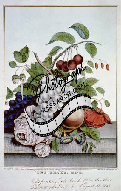 Photo of Fruit,c1848,Currier & Ives,grapes,cherries,flowers