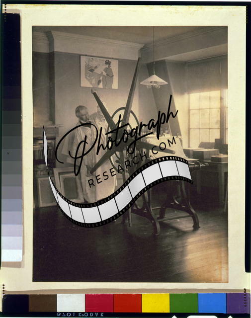 Joseph Pennell,working on etching at Peters' studio,Philadelphia,wearing apron