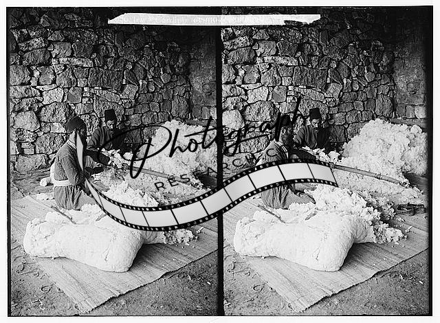 Jews carding cotton,Middle East,American Colony Jerusalem Photo Dept,1900-1920