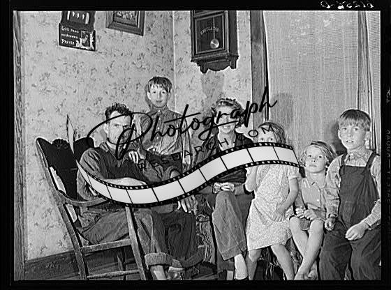 Title: FSA (Farm Security Administration) rehabilitation borrower and family. The wife made the drapes, the chair covers, and papered the wall herself. Door County, Wisconsin