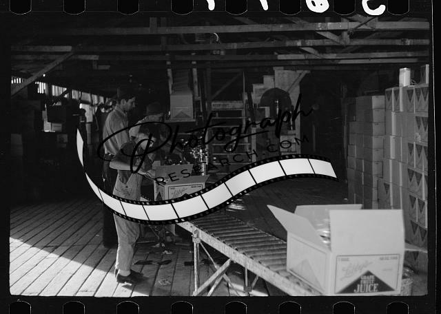 Packing canned grapefruit juice,packing shed,Weslaco,Texas,TX,Rothstein,1942,1