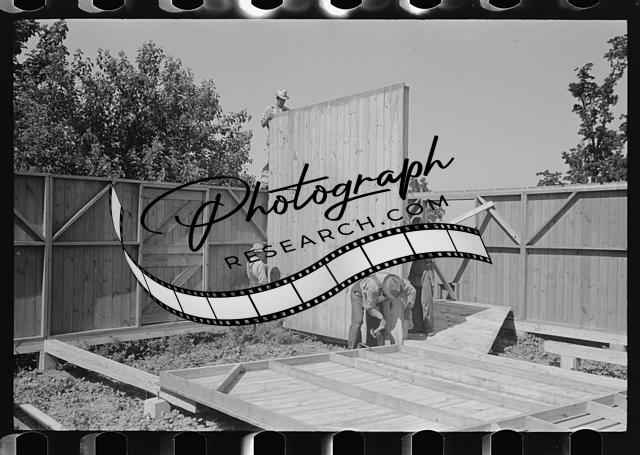 Title: Porch plant. Finishing floor framing panel on the framing table. Southeast Missouri Farms Project