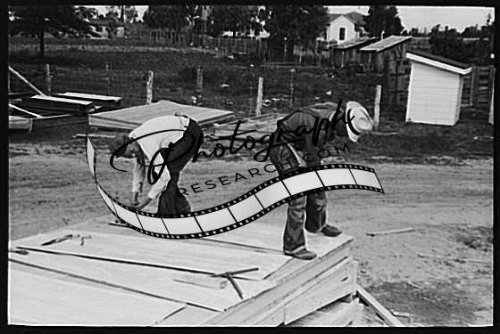 Title: House plant. Nailing siding on two door panels. Southeast Missouri Farms Project