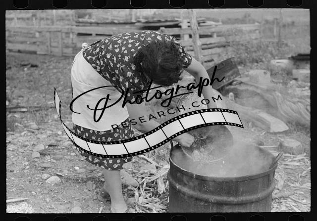 Title: Spanish-American FSA (Farm Security Administration) client stirring kettle of soap, Taos County, New Mexico
