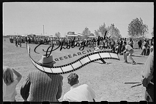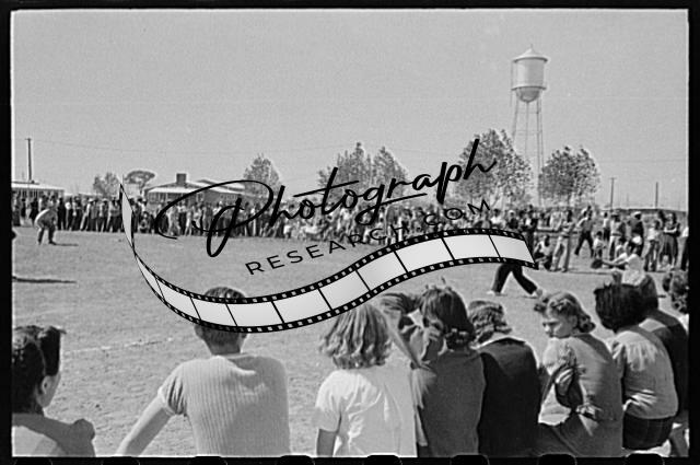 Title: Watching basketball game at the annual field day at the FSA (Farm Security Administration) farmworkers community, Yuma, Arizona