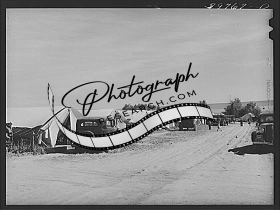 Title: Tents, power unit and laundry shelters at the FSA (Farm Security Administration) migratory farm labor camp mobile unit. Athena Oregon