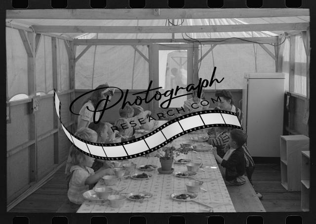 Title: Lunch for children at the FSA (Farm Security Administration)'s mobile camp for migratory farm workers, Odell, Oregon