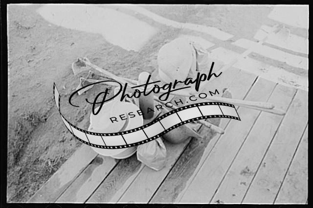 Title: Nyssa, Oregon. FSA (Farm Security Administration) mobile camp. Hoes, lunch bags, and other belongings of Japanese-Americans farm workers who live at the camp