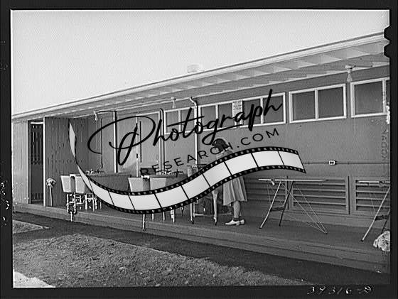 Title: Washbasins at the FSA (Farm Security Administration) trailer camp for defense workers. San Diego, California