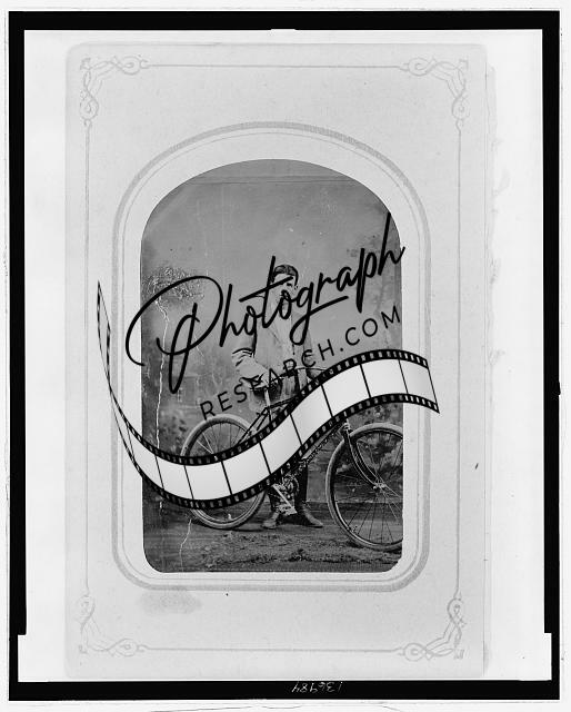 Full-length of a young man next to a bicycle,1890-1910