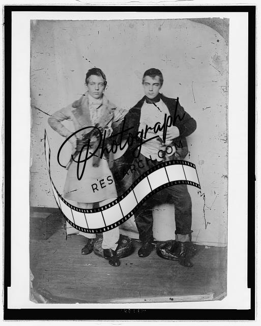 2 young men wearing frock coats,sashes,pistols at their waists,1860-1900