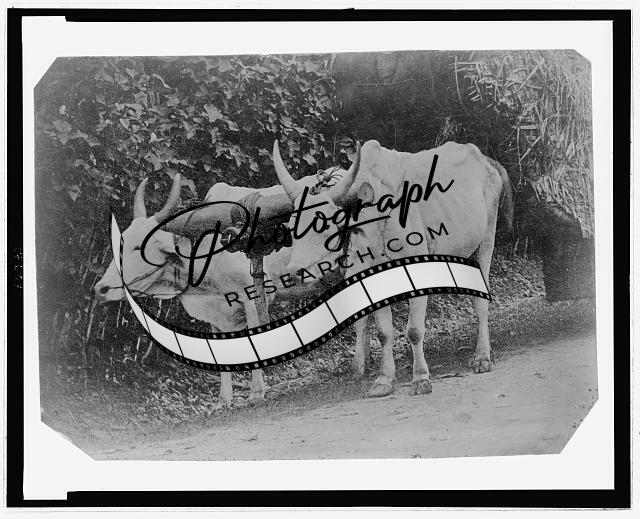Two yoked oxen,1860-1900,Ox team,Tintype,on road?