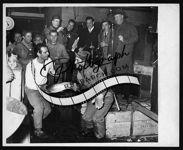 Fish instead of meat,seafood,Fulton Fish Market,Bronx,New York,NY,1946,men
