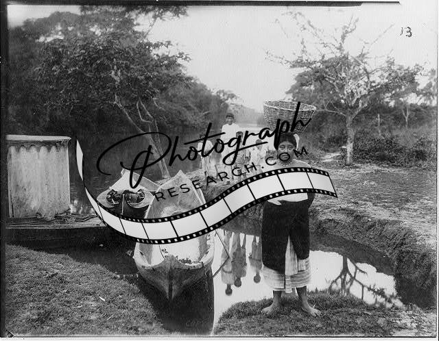 Woman,Basket on Her head,Dugout Boats,Children,Cuba,1917,Water