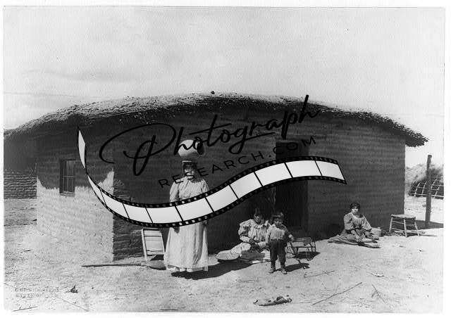 Pima Indian,outside adobe house,woman,pottery,vessel,head,balance,dwelling,c1900