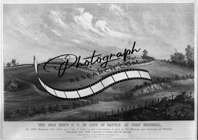 The 103rd regt. O.V.,in the line of battle at Fort Mitchell,soliders,hills