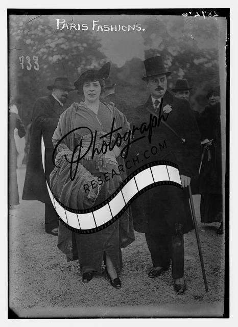 Paris fashions,woman,man,cane,top hat,dress,suit,1910-1915