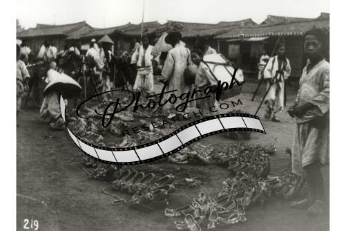 Shoe market,Seoul,Korea,East Asia,1890-1923,people,shoes