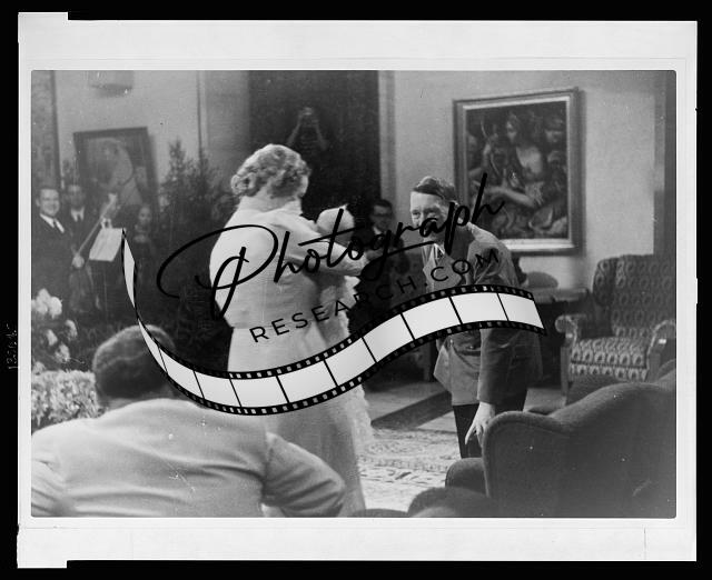 Taufe von Edda Göring in Carinhall, Photograph shows Adolf Hitler smiling and greeting Emmy Göring and baby Edda Göring before the baptism ceremony.