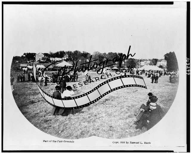 Part,fair grounds,tents,buildings,pedestrians,crowds,outdoors,amusement,c1917