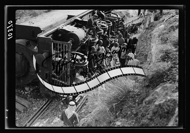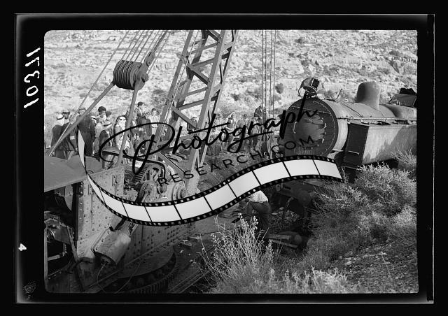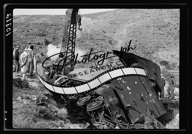 Closer view of wrecked engine near Deir esh-Sheikh,Israel,Middle East,c1935